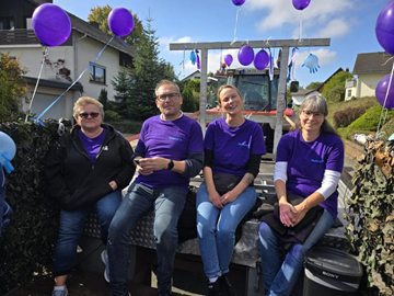 „Mit einem bunt geschmückten Wagen, Ballons, Seifenblasen und vielen Gummibärchentüten nahm die Diakoniestation Ehringshausen am Kirmesumzug in Kölschhausen teil.“